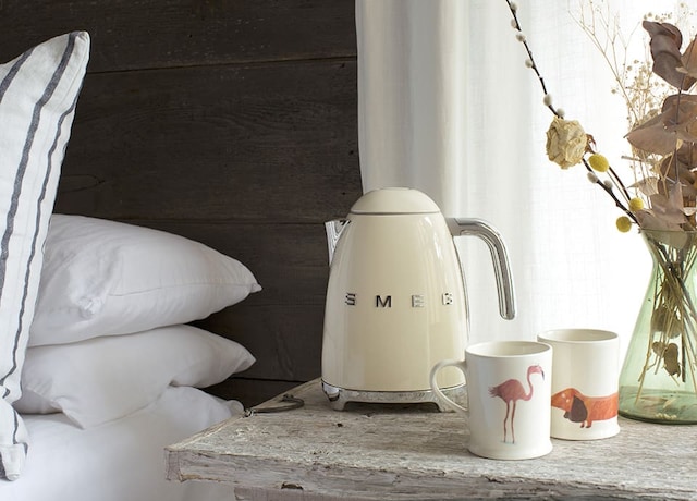 Med 1400 watts effekt og en kapasitet på 0,8 liter minimerer Smeg-vannkokeren sløsing med vann. Den passer for ulike innstillinger som hjemmekontor og stuer, og kan gi et kult utseende også til hotellrommene. Den dobbelte veggen med innvendig rustfritt stål holder vanntemperaturen lenger, mens ytterveggen i plast er kaldere å ta på.