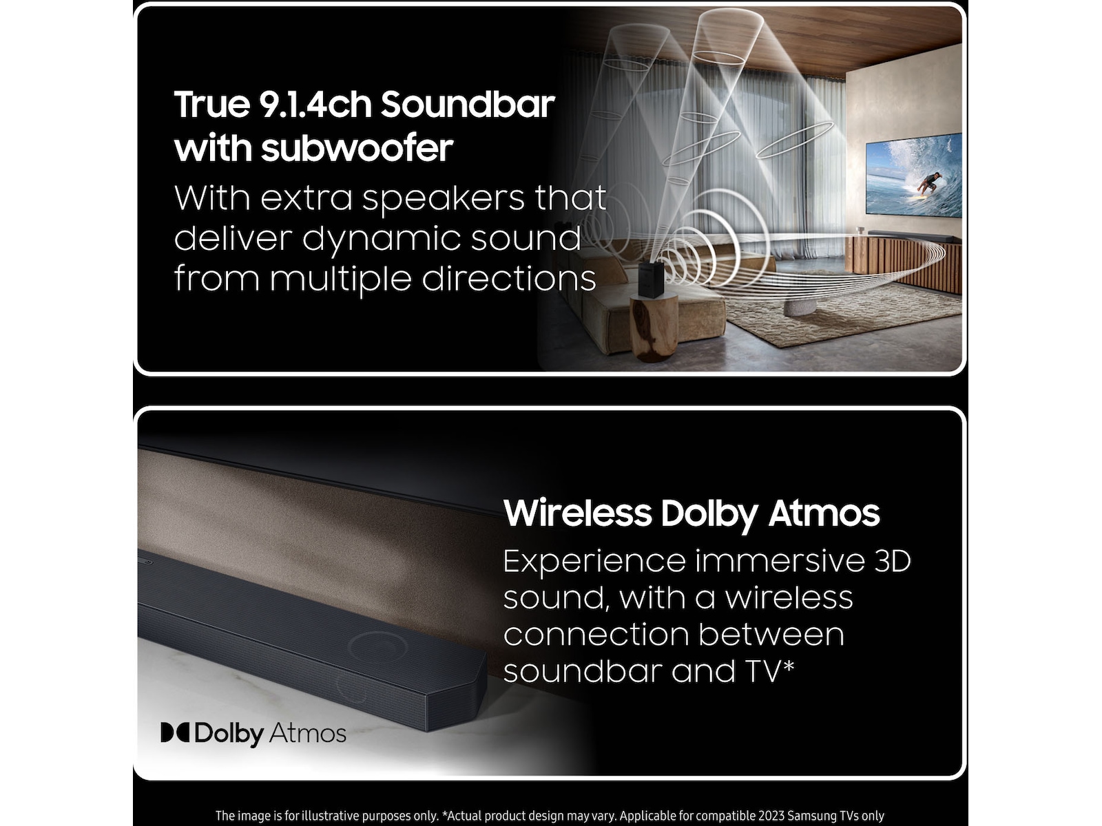 * Samsungs trådløse bakhøyttalere er inkludert.