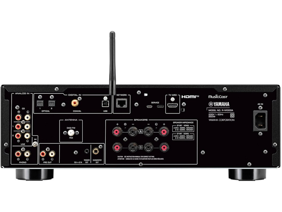 Det omfattende utvalget av tilkoblingskontakter på R-N1000A inkluderer spesielle phono-kontakter, noe som gjør det enkelt å koble til en LP-platespiller og nyte musikk fra vinylsamlingen din.