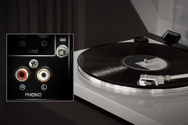 - Spesielle phono-kontakter gjør det mulig å høre på vinylsamlingen din.