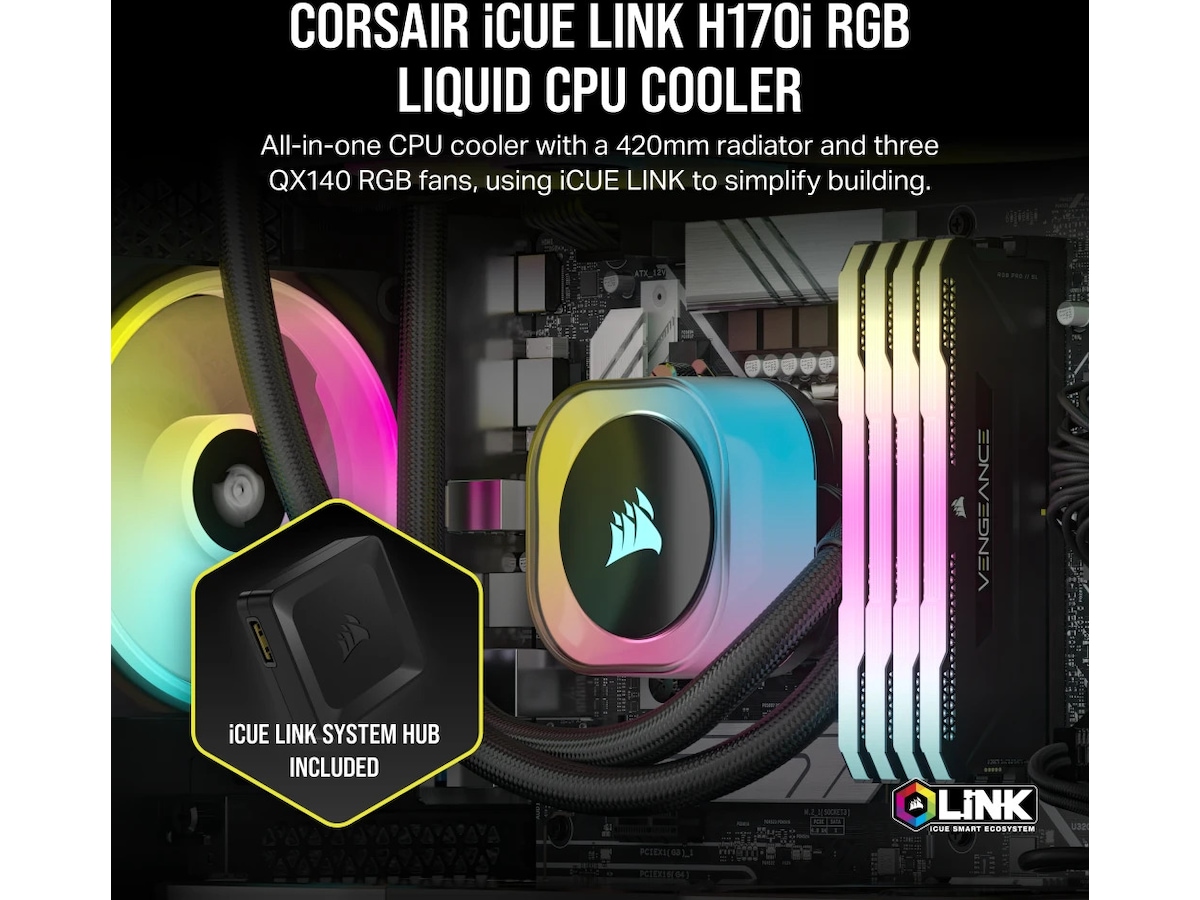 iCUE Link-hub, 3 140 mm iCUE LINK QX140 RGB-vifter, iCUE Link-kabel