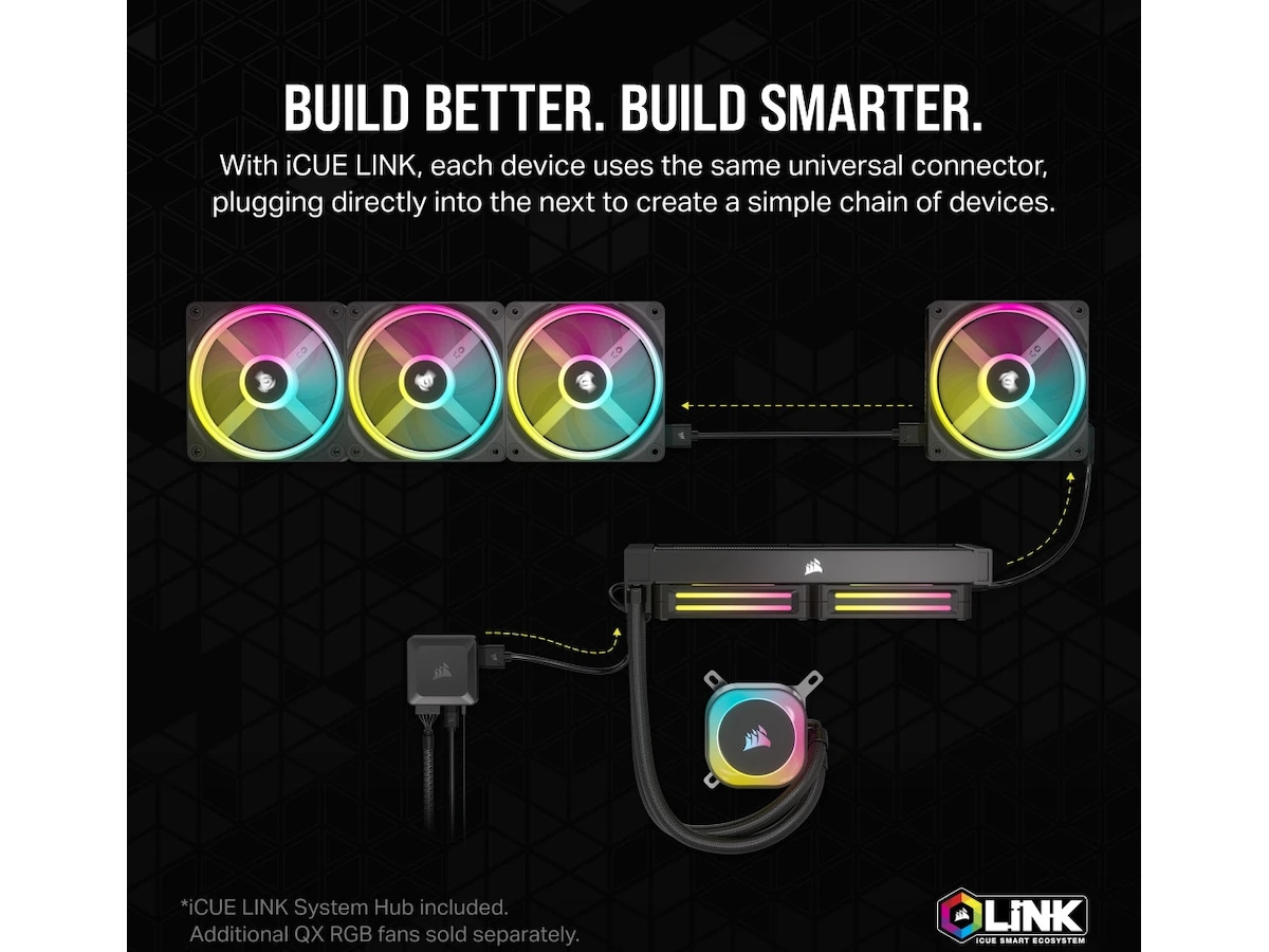 - iCUE LINK System Hub er inkludert for å koble til opptil 14 enheter