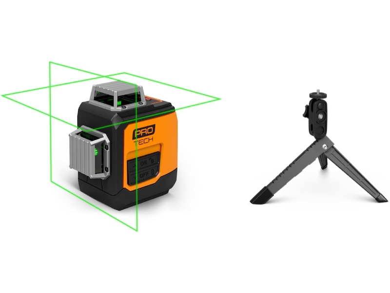 Protech 360° Cross Leveller projiserer linjene med en høy nøyaktighet på opptil ±0,5 mm/m, og sørger for at begge linjene er nøyaktig jevne og akkurat der du vil ha dem. Den tilbyr et arbeidsområde på 20 meter, og den grønne laseren gir deg høy synlighet under alle slags forhold.