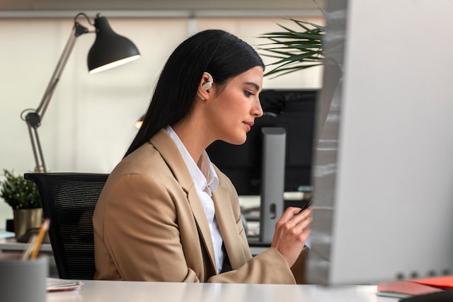 På kontoret kan du samhandle med kollegene dine når som helst uten å ta av ørepluggene.