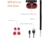 Vil du ikke bekymre deg for daglig lading? Du får 7 timers avspillingstid og 21 ekstra timer med det lille ladeetuiet. Hvis du legger øreproppene tilbake, lades de helt opp på 2 timer. Hvis du trenger en rask opplading, gir bare 5 minutter deg en ekstra time med lytting. Etuiet kan lades via USB-C.