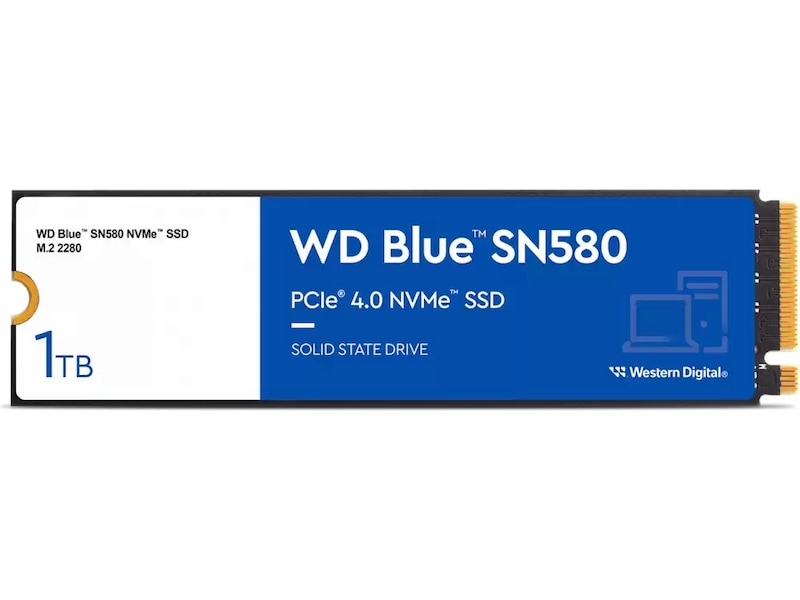 Sett i gang fantasien med WD Blue SN580 NVMe SSD med PCIe® Gen 4.0 for skapere og profesjonelle. Øk produktiviteten eller design reklamer enkelt ved å oppgradere til PCIe Gen 4.0 SSD-er med lesehastigheter på opptil 4150 MB/s (1 TB og 2 TB-modeller). Med opptil 2 TB lagringsplass på en slank M.2 2280 formfaktor, kan applikasjoner, data og medier som bilder, 4K-videoer og musikk lagres på den samme stasjonen. Fortsett å skape uavbrutt når du er i sonen eller på farten med lagringsplass med lavt strømforbruk for å maksimere den bærbare datamaskinens batterilevetid.