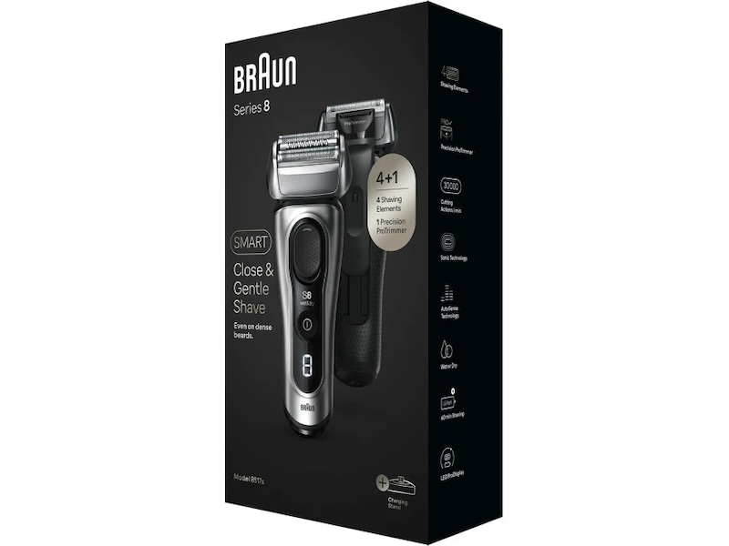 Wet & Dry-barbermaskin Braun Series 8 8517s med ladestativ og reiseetui