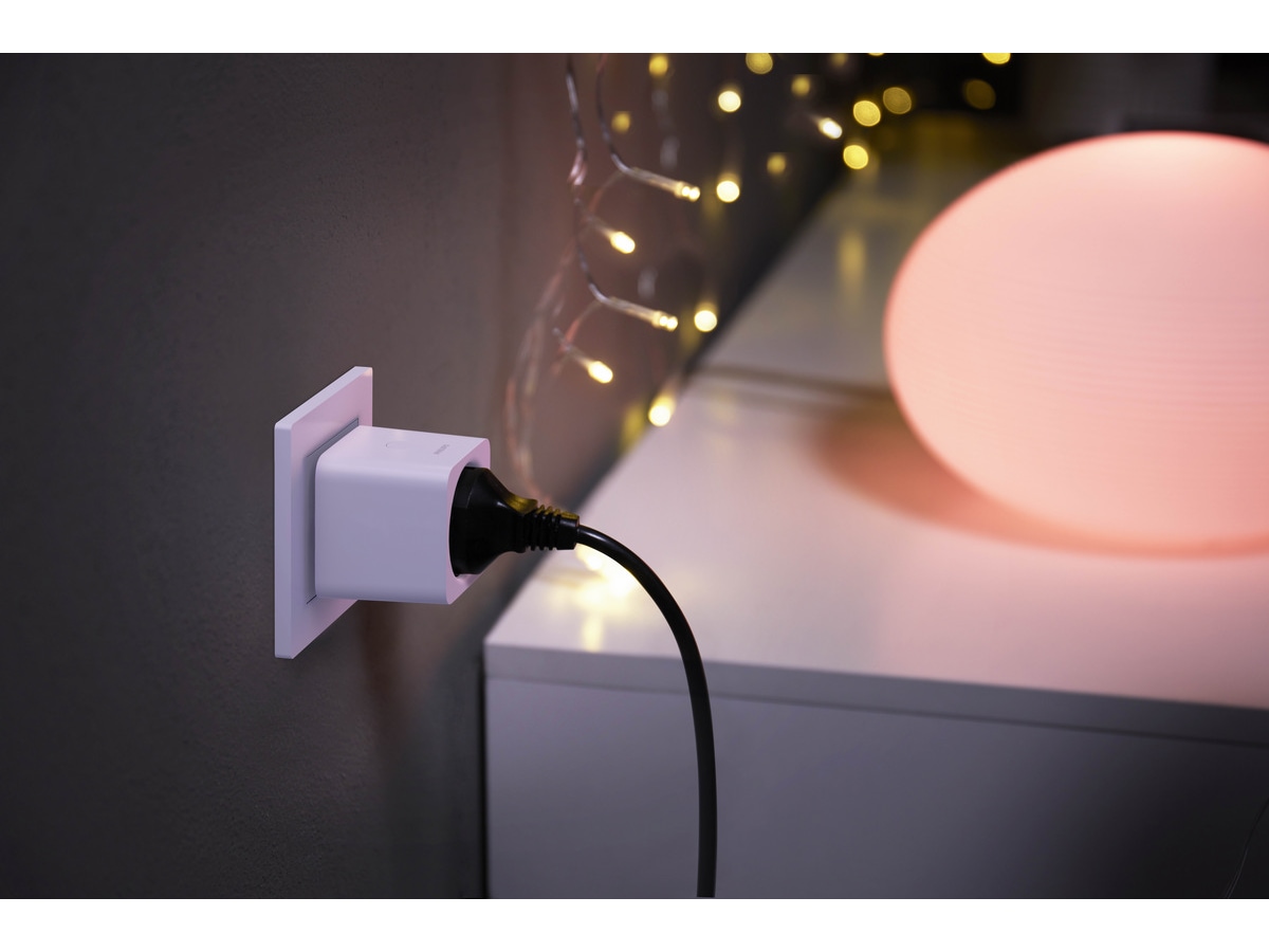 Philips Hue-smartkontakten er laget for å passe inn i ethvert miljø. Ved hjelp av den kompakte, hvite smartkontakten i diskret design kan du enkelt koble til en hvilken som helst lampe til Hue systemet ditt – uten ekstra ledninger.