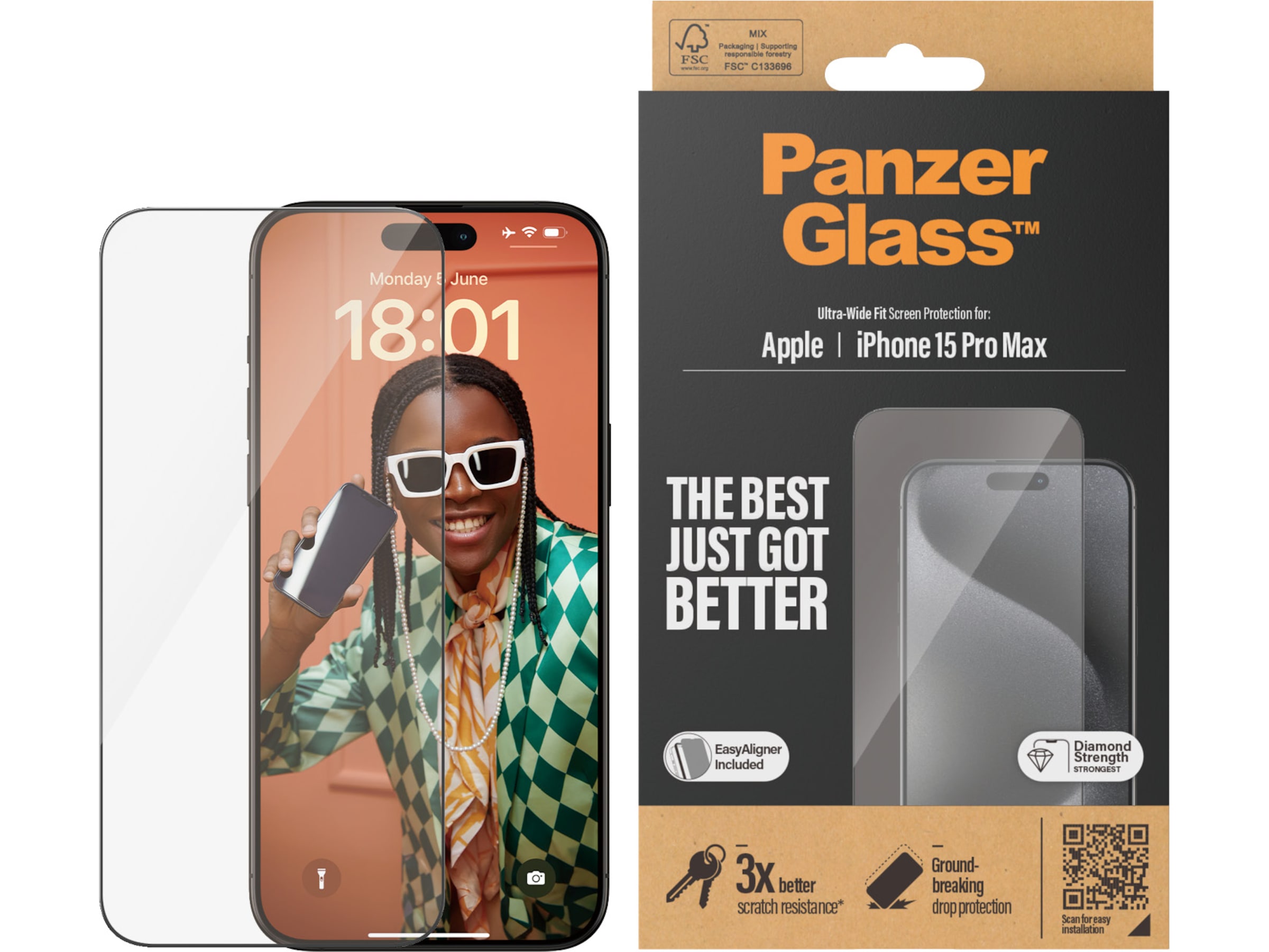 Panzerglass skjermbeskytter UltraWide passform med Easyaligner - iPhone 15 Pro Max
