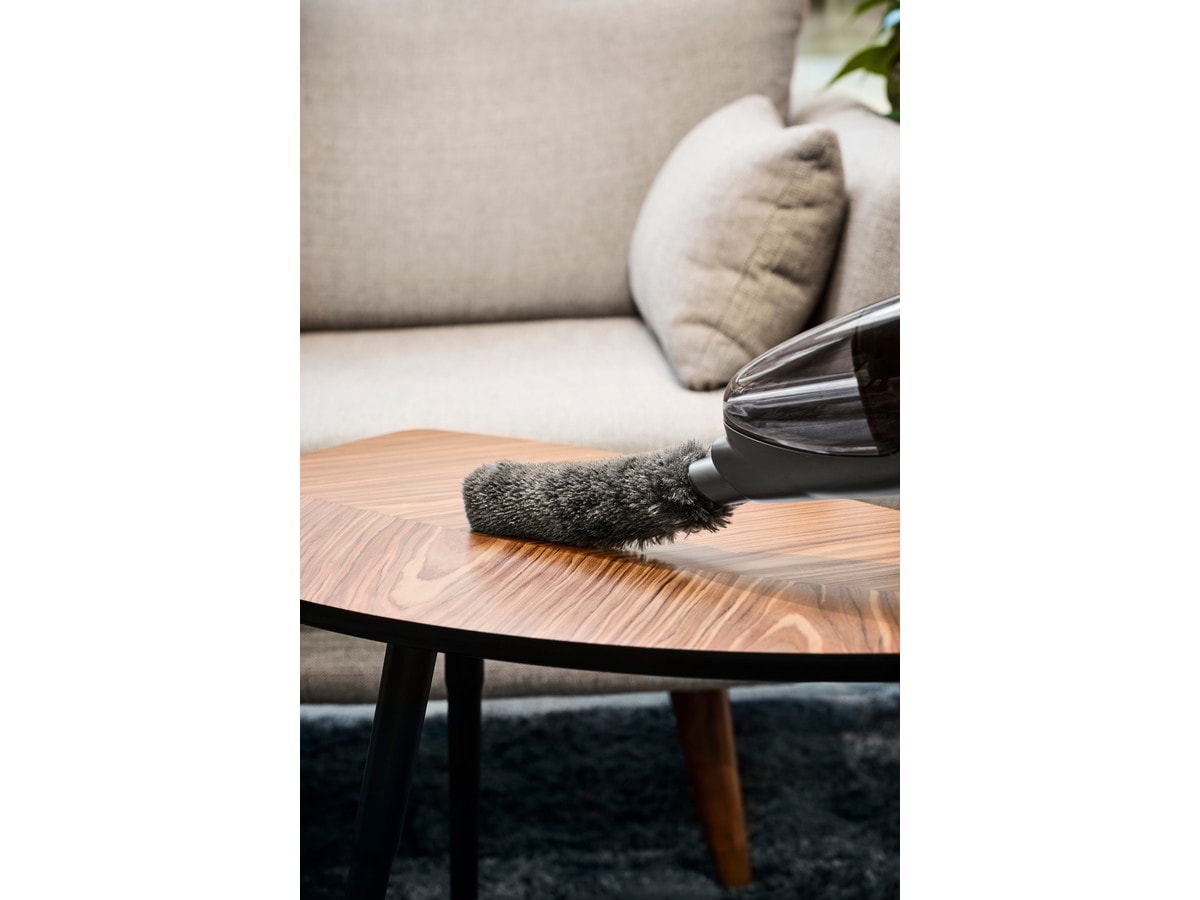 Ekstra sugekraft lar støvkosten fjerne støv fra fine overflater uten å slippe det ut i luften igjen.