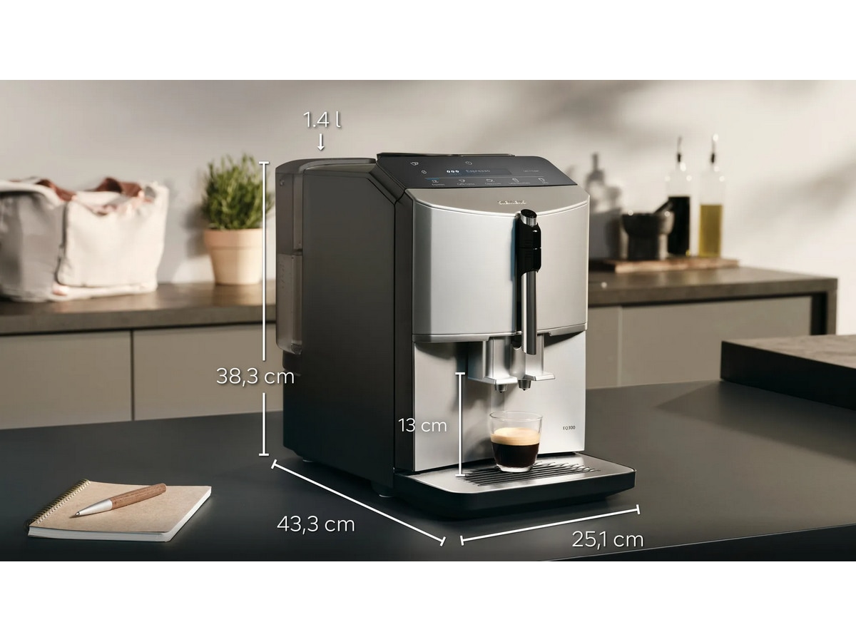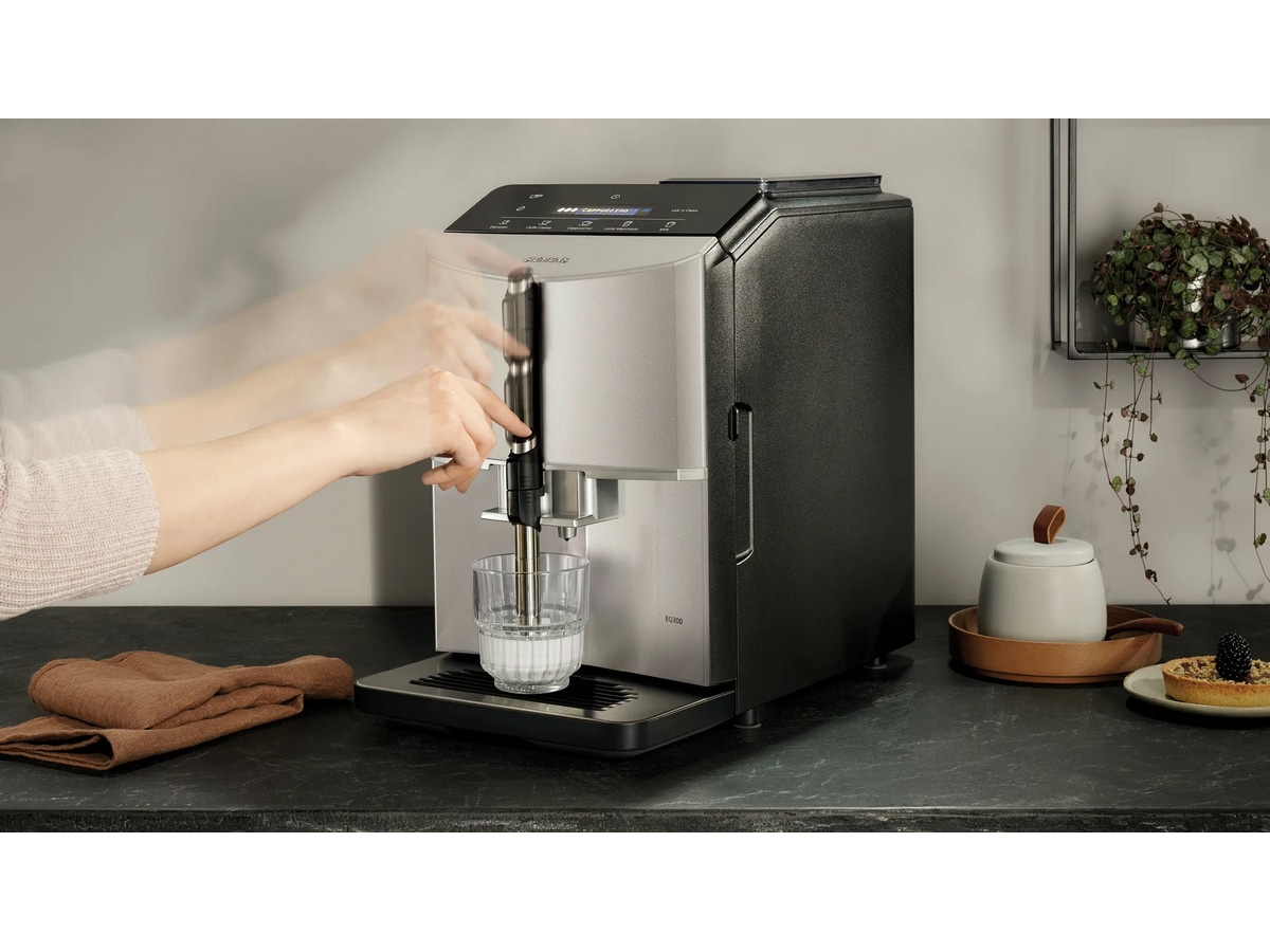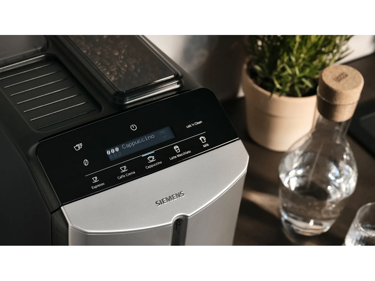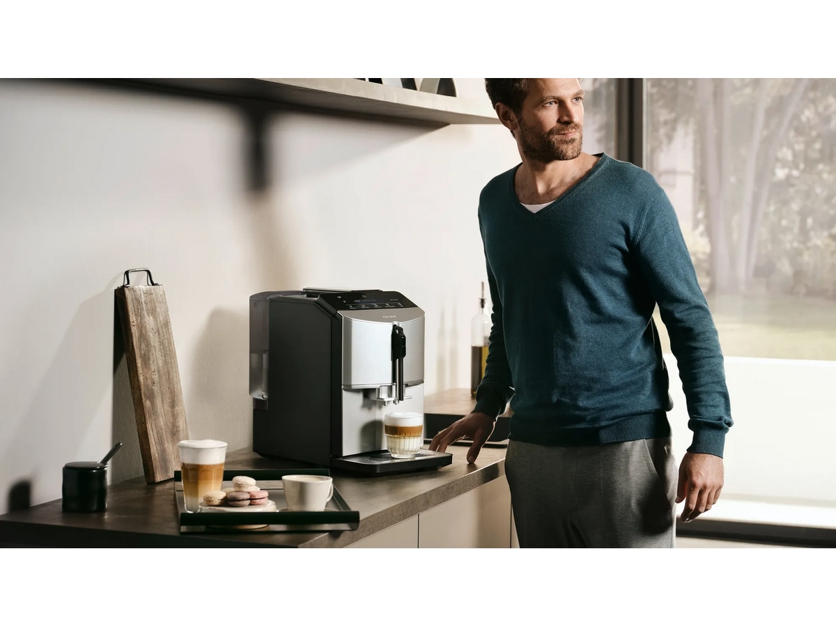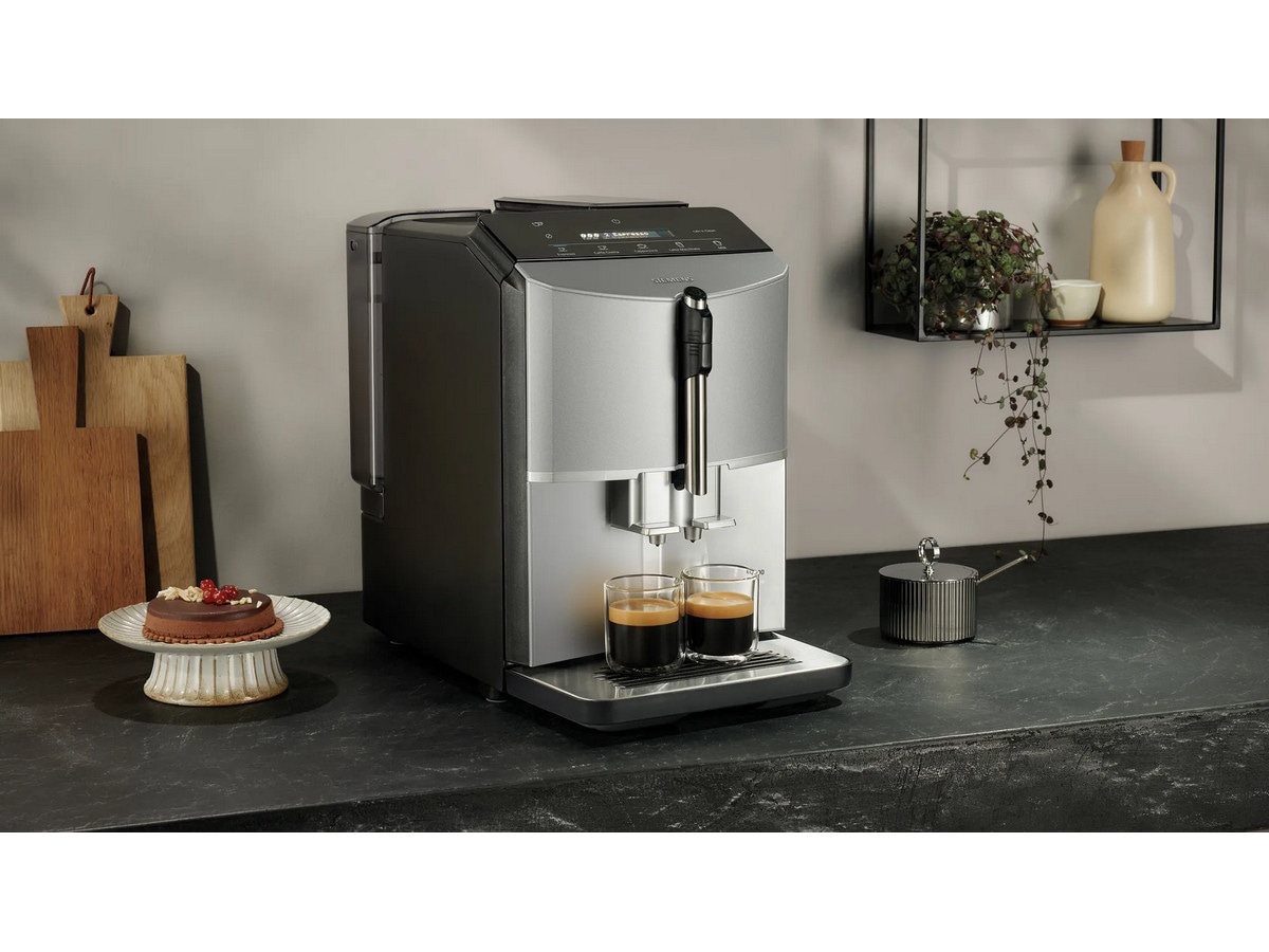 Siemens EQ300 Automatisk kaffemaskin TF303E07 coffeeDirect : Den enkle veien til perfekt kaffe nytelsemilkPerfect: melkeskummeren som gir et garantert bra resultat gjennom automatisk skumming rett i koppenoneTouch funksjon : alle kaffedrikker fra espresso til cappucino eller kaffe latte brygges ved ett tastetrykkEnkelt vedlikehold og rengjøring via serviceluken foran på maskinen iAroma System - Unik teknologi der alle deler jobber i perfekt synergi for å skape den perfekte espressoen.Uslåelig melkeskum garanteres med milkPerfect. Melkeskummet lages direkte i koppen, noe som gir et fast og fint melkeskum – garantert godt resultat også for en nybegynner.