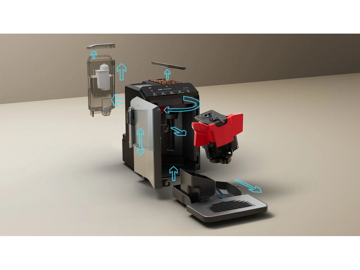 Høydejusterbar melketut, Justerbar vannhardhet, Keramisk sliper, Justerbar malevinkel, BRITA vannfilterteknologi, Automatisk avskallingsprogram, Automatisk skylling, Automatisk renseprogram, Høydejusterbar kaffemaskinstut, iAroma System, melkPerfekt-dyse
