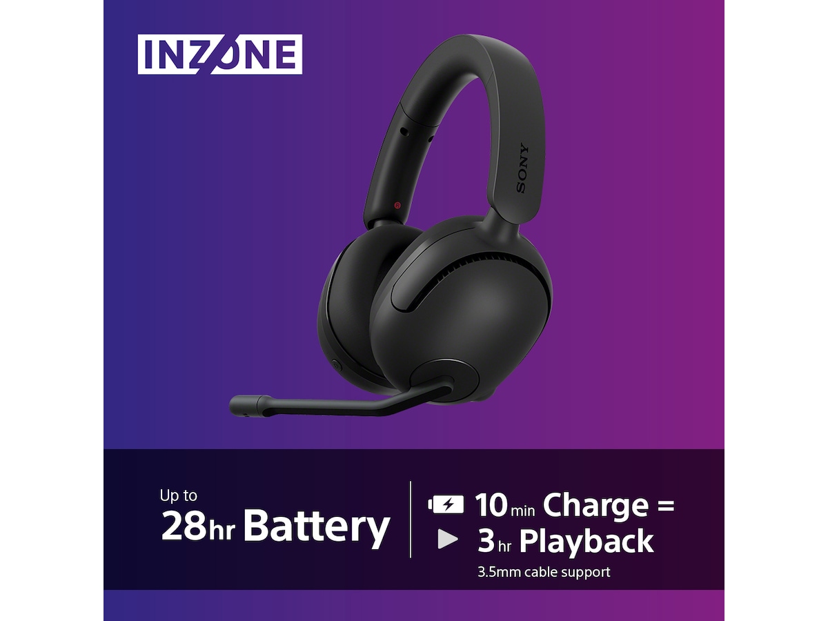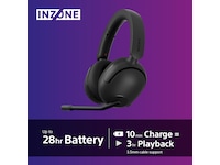 Med opptil 28 timers uavbrutt spilletid, holder INZONE H5 så lenge du har behov for det. Med tre timers spilletid etter bare 10 minutters lading, kan du være tilbake for fullt etter en liten pause.På vei til å gå tom for strøm? Lad hodetelefonene med den medfølgende USB-kabelen og bli værende i kampen.