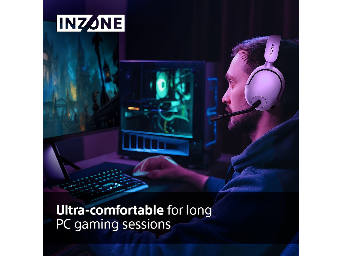 INZONE H5 er designet for å minske trykket på ørene samtidig som det balanserer stabiliteten og komforten, slik at du kan komme deg gjennom enhver økt. Puten på hodebøylen er bred nok til å fordele vekten jevnt over hodet, slik at det er komfortabelt å ha på seg lenge. Samtidig er de myke og tykke øreputene laget av et spesialtilpasset nylonmateriale som er designet for å forbedre pusteevnen og forme seg perfekt etter hodet.