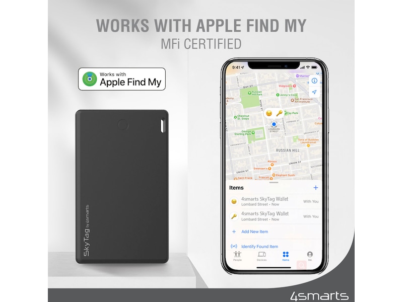 Enten du har tatt bort den hjemme, på kontoret eller på veien, kan du enkelt finne den ved hjelp av Apple Find My-appen på iPhone. Bruk aldri mer verdifull tid på å lete etter lommeboken din! Fest en Bluetooth Tracker SkyTag Wallet til andre gjenstander, for eksempel nøkkelringen, laptopvesken eller ryggsekken. På denne måten vil du alltid kunne spore plasseringen til viktige gjenstander og finne dem raskt. For å gjøre dette, åpner du appen du allerede har installert og finn tingene dine med AirTag-kartet.