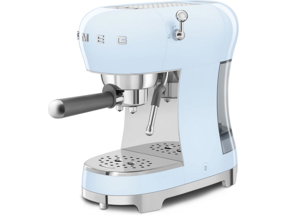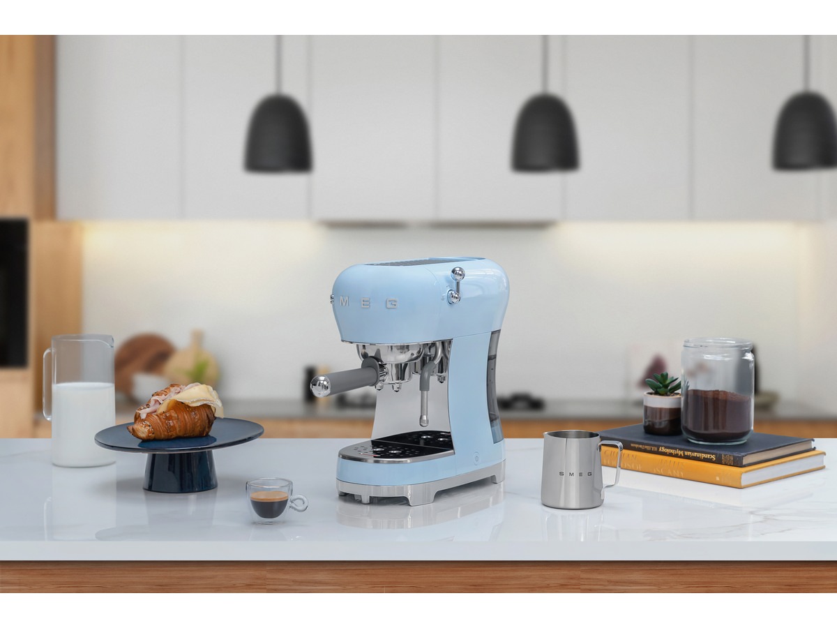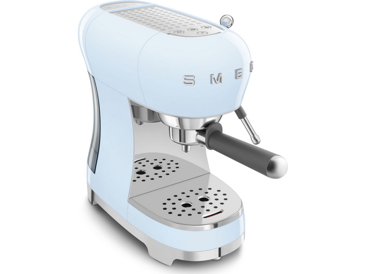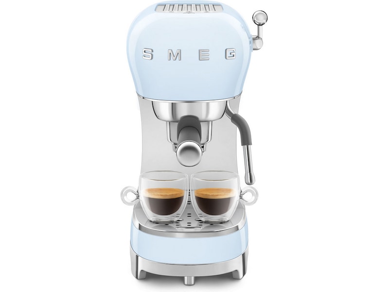 Den nye ECF02-kaffemaskinen egner seg for både malt kaffe og papirbelger, takket være filterholderen i rustfritt stål. I tillegg sikrer Thermoblock-varmesystemet raske bryggetider og presis kontroll av vanntemperaturen for kaffebrygging. Med et trykk på 15 bar lover den nye kaffemaskinen Smeg ECF02 de beste resultatene for en utmerket espresso.