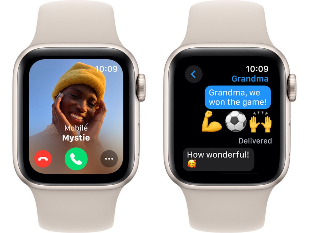 Send en melding, ring, hør på musikk og podkaster, bruk Siri eller tilkall hjelp med Nødanrop (SOS). Apple Watch SE (GPS) samarbeider med iPhone eller Wi-Fi for å holde deg tilkoblet.