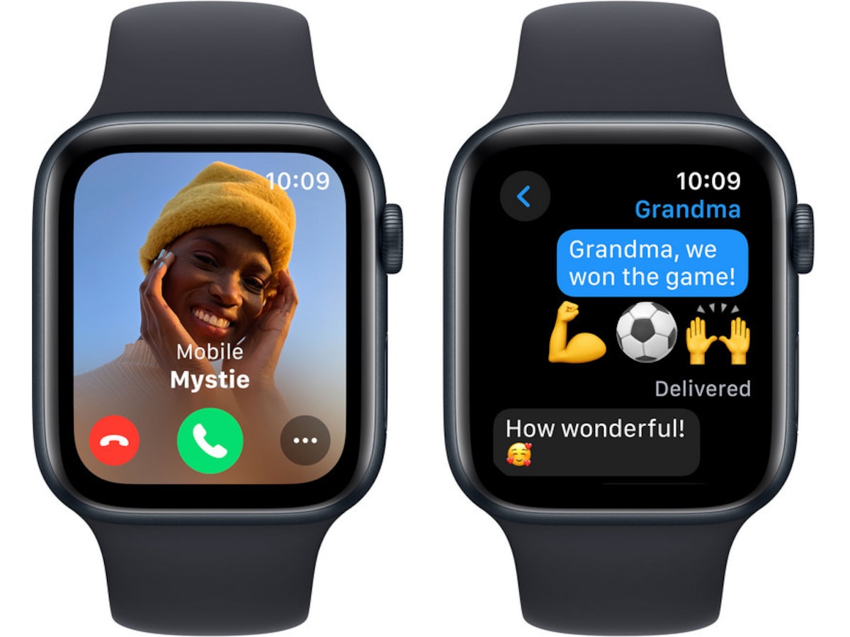 Send en melding, ring, hør på musikk og podkaster, bruk Siri eller tilkall hjelp med Nødanrop (SOS). Apple Watch SE (GPS) samarbeider med iPhone eller Wi-Fi for å holde deg tilkoblet.