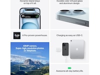 iPhone 15 Plus har en solid design av gjennomfarget glass og aluminium. Den er sprut-, vann- og støvbestandig.1 På forsiden har den Ceramic Shield, som er sterkere enn glasset på noen smarttelefon. Og Super Retina XDR-skjermen på 6,7 tommer2 er opptil dobbelt så lyssterk i solskinn sammenlignet med iPhone 14.