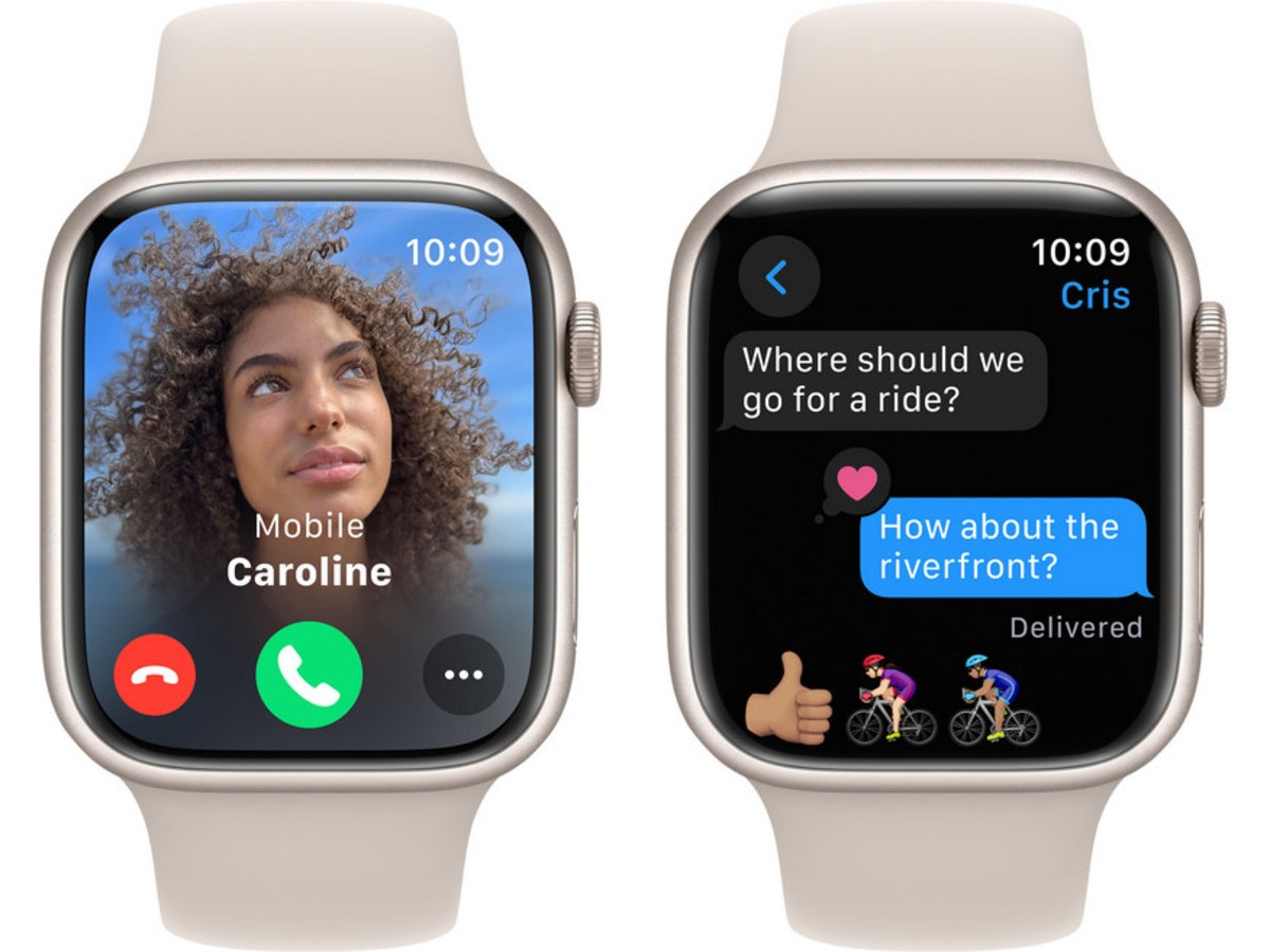 Send en melding, ring, hør på musikk og podkaster, bruk Siri og få varslinger mens du er på farten. Apple Watch Series 9 (GPS) sammenkobles med iPhone eller Wi-Fi så du alltid er tilkoblet.