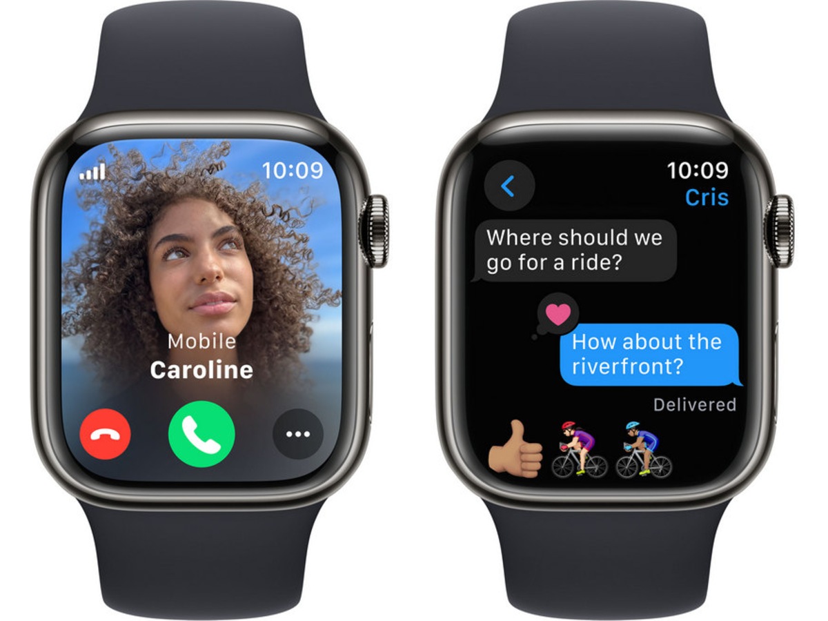 Send en melding, ring, hør på musikk og podkaster, bruk Siri og få varslinger mens du er på farten. Apple Watch Series 9 (GPS) sammenkobles med iPhone eller Wi-Fi så du alltid er tilkoblet.