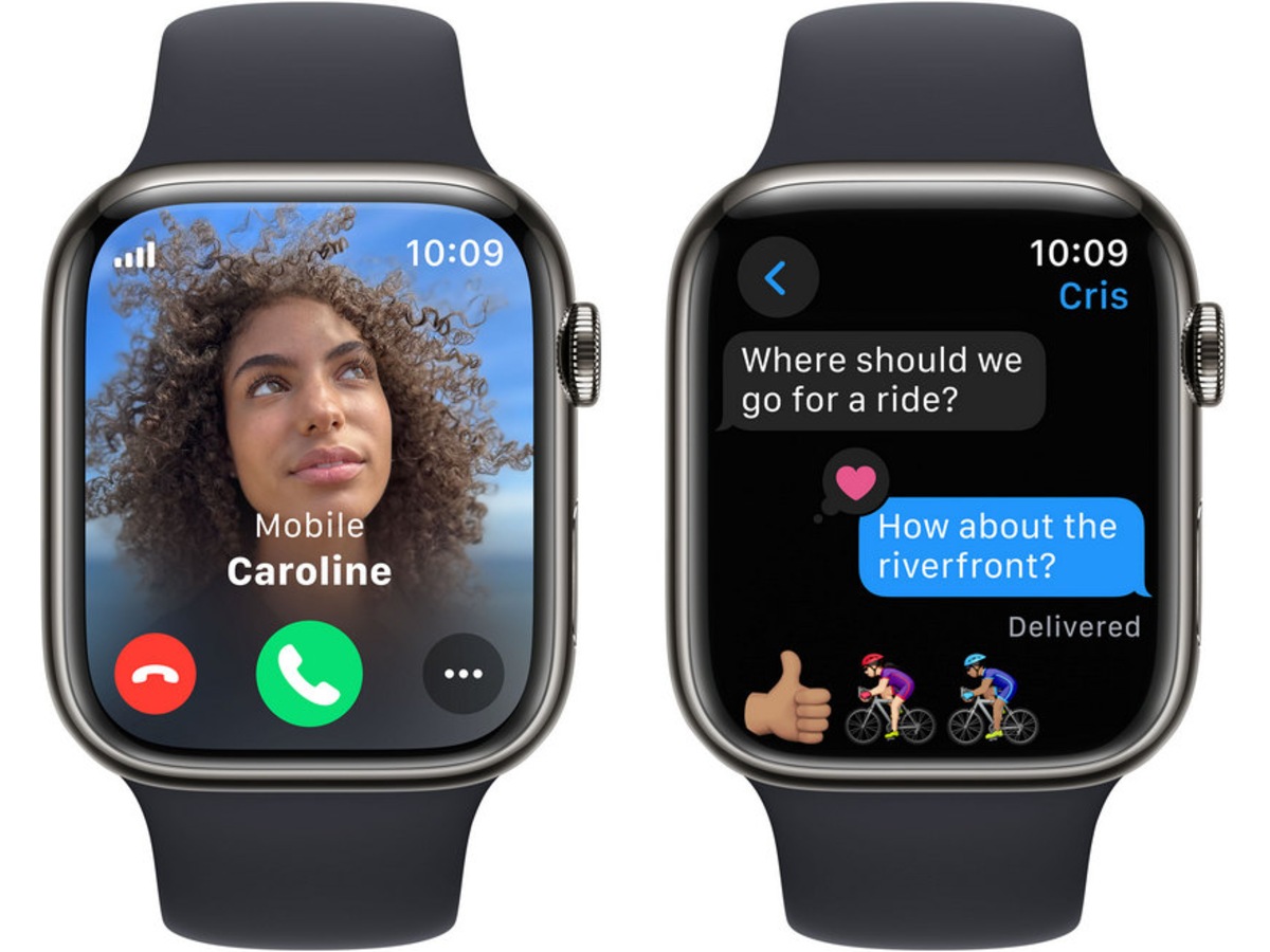 Send en melding, ring, hør på musikk og podkaster, bruk Siri og få varslinger mens du er på farten. Apple Watch Series 9 (GPS) sammenkobles med iPhone eller Wi-Fi så du alltid er tilkoblet.