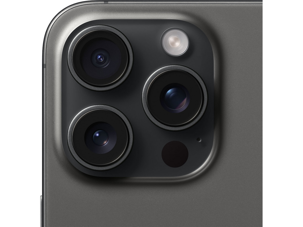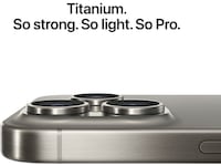 iPhone 15 Pro Max har en sterk og lett design i titan i romfartskvalitet, med teksturert, matt glass på baksiden. I tillegg har forsiden Ceramic Shield, som er sterkere enn glasset på noen smarttelefon. Og den er sprut-, vann- og støvbestandig