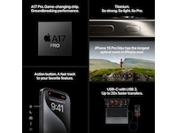 iPhone 15 Pro Max. Støpt i titan, og har den banebrytende A17 Pro-chipen, en handlingsknapp som kan tilpasses og det mest avanserte kamerasystemet i noen iPhone.