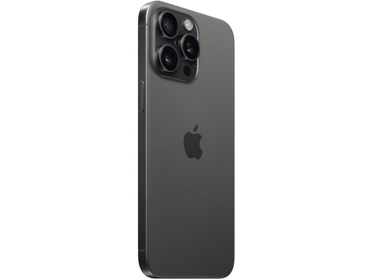 iPhone 15 Pro Max har en sterk og lett design i titan i romfartskvalitet, med teksturert, matt glass på baksiden. I tillegg har forsiden Ceramic Shield, som er sterkere enn glasset på noen smarttelefon. Og den er sprut-, vann- og støvbestandig