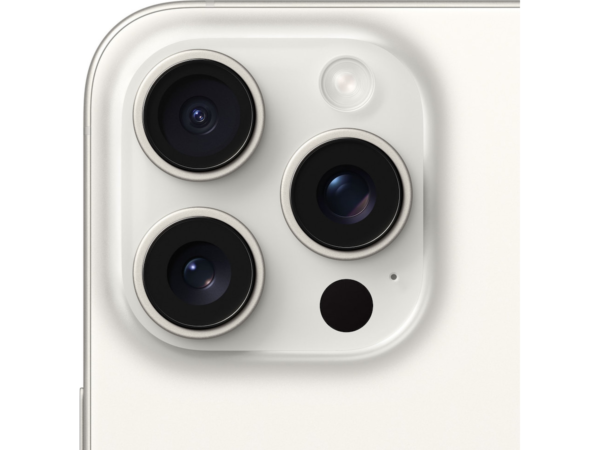 iPhone 15 Pro Max har en sterk og lett design i titan i romfartskvalitet, med teksturert, matt glass på baksiden. I tillegg har forsiden Ceramic Shield, som er sterkere enn glasset på noen smarttelefon. Og den er sprut-, vann- og støvbestandig