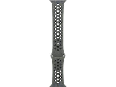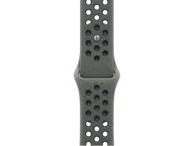 Nike Sport Band er laget med presstøpte perforeringer som gir huden luft. Remmen er slitesterk, men likevel overraskende myk. Den har fargerike flak som skaper et tilfeldig mønster, noe som gjør hver rem helt unik. Det jevne, solide materialet former seg elegant rundt håndleddet og føles behagelig mot huden. En låsepinne av aluminium har en stilren, matt finish.