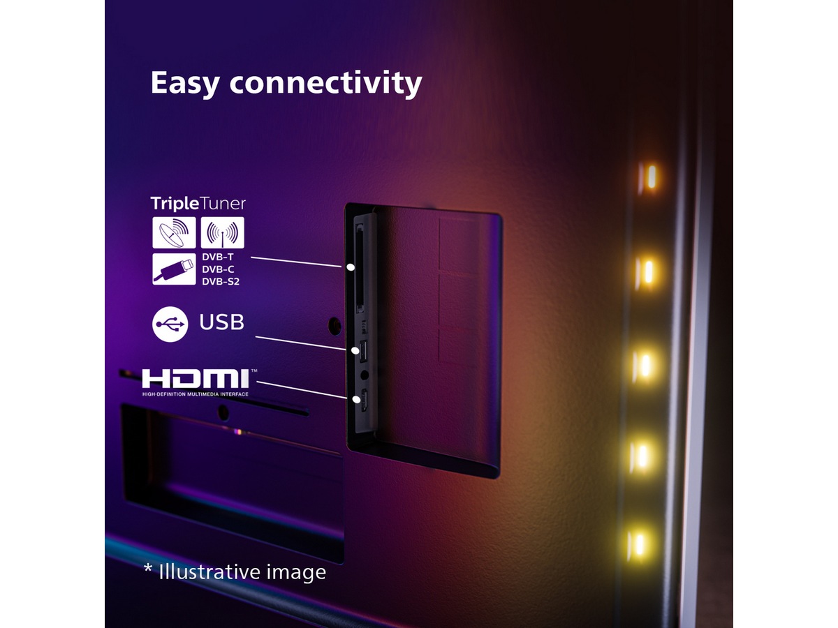 Lydreturkanal (ARC), System Audio Control, Dolby Volume Leveller, Dolby Bass Enhancement, AI EQ, AI Sound, Clear Dialogue, Nattmodus