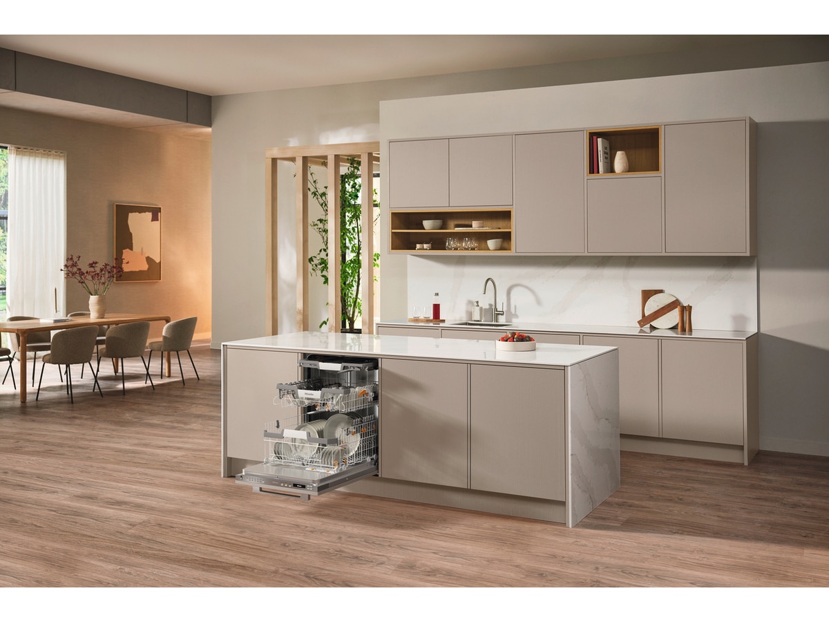 Miele G7265 SCVi XXL Integrert oppvaskmaskin Med 3D MultiFlex-skuff for høy komfort. I tillegg kan du spare opptil 50 % strøm med varmtvannstilkobling Alt helt tørt –AutoOpen-tørking Friskvannsoppvaskmaskin– fra 6 l liter i Automatic-programmet Spesielt lett åpning og lukking av døren –ComfortClose Fleksibelt og sikkert plassert – ExtraComfort-kurvdesign 3D-MultiFlex-skuff Rydd enkelt inn i oppvaskmaskinen: Raffinerte justeringsmuligheter gjør at også små gjenstander holdes på plass.