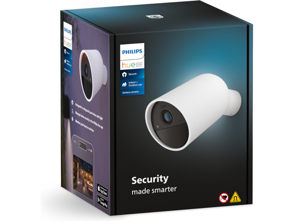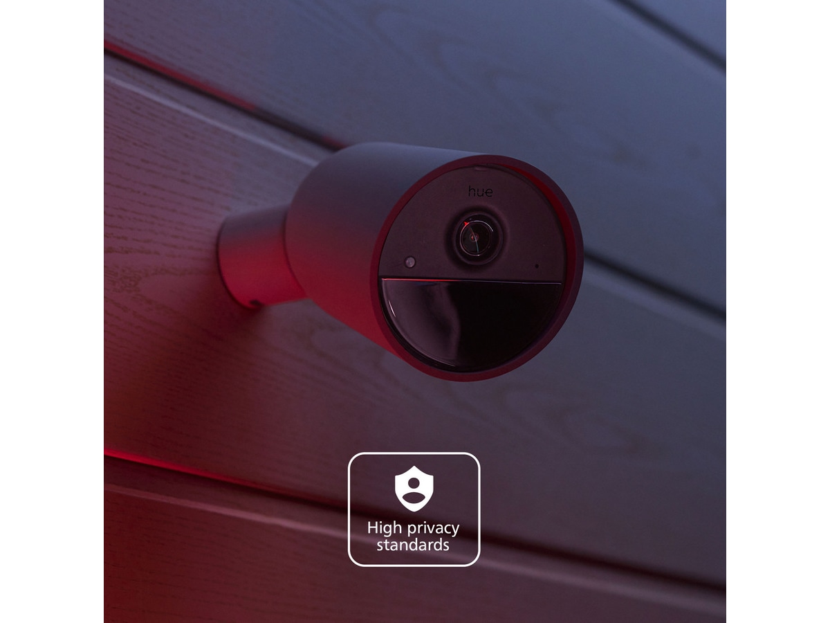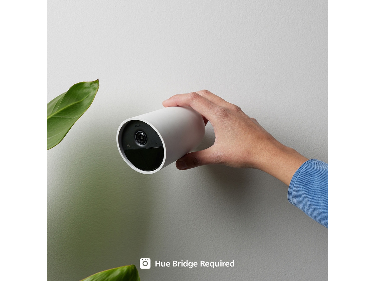 La Philips Hue holde øye med hjemmet ditt! Få en klar og tydelig 1080p HD-livestream, slå på lysene eller motta et varsel på mobilenheten din når det oppdages bevegelse eller lyd og annet. Dette trådløse sikkerhetskameraet er enkelt å montere og installere i alle hjem.