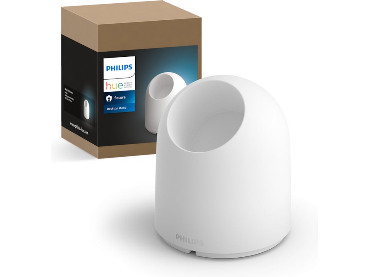 Secure-skrivebordstativet lar deg plassere et kablet Securekamera på et hvilket som helst flatt underlag hjemme. Det er vektet for stabilitet og designet for å skjule ladekabelen. Det forener dessuten form og funksjon for å stå perfekt til enhver innredning.