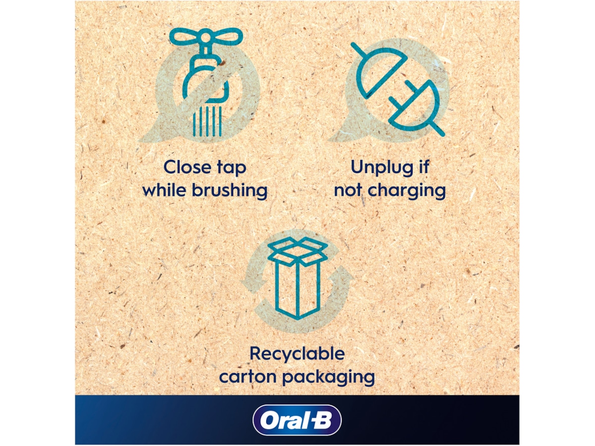 Oral-B PRO 3 kommer med et rundt børstehode som omslutter hver tann for renere tenner og et sunnere tannkjøtt, og fjerner opptil 100 % mer plakk enn en manuell tannbørste.