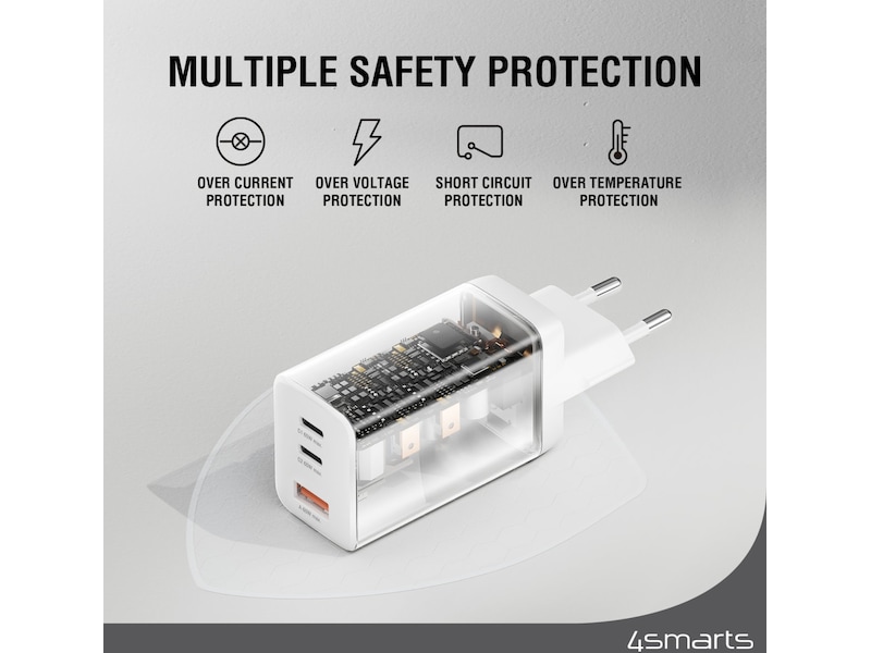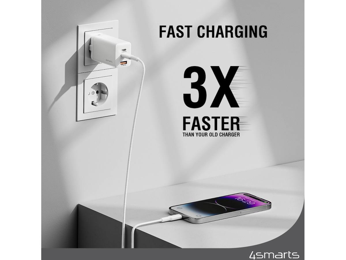 Kraftige ladere er ofte ganske store. Vår GaN PDPlug Trio er derimot mye mindre og mer kompakt. Vi klarer dette fordi laderen vår er utstyrt med den nyeste GaN Charger-teknologien. Denne teknologien sikrer at vi kan bygge elektronikken tettere sammen uten å generere mer varme. Som et resultat forblir ladeeffekten ekstremt sterk til tross for den lille størrelsen. Dette gjør GaN Charger til en perfekt reisefølge. Du kan enkelt oppbevare den i håndvesken, ryggsekken eller til og med i jakkellommen. Plassmangel vil være et fremmedord for deg.