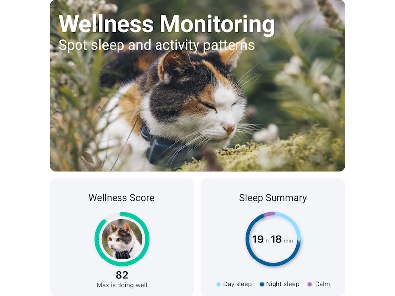 Vit alltid hvor katten din er, og se enkelt hvor den har vært. Oppdag søvnmønstre og overvåk aktiviteten deres ved å se velværeresultat.