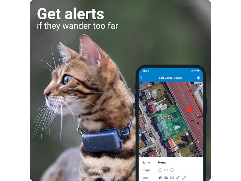Angi trygge soner – som hagen din - samt soner som katten din bør unngå - som et jorde nær en trafikkert vei. Du får raskt et varsel når de forlater eller går inn i en av dem.