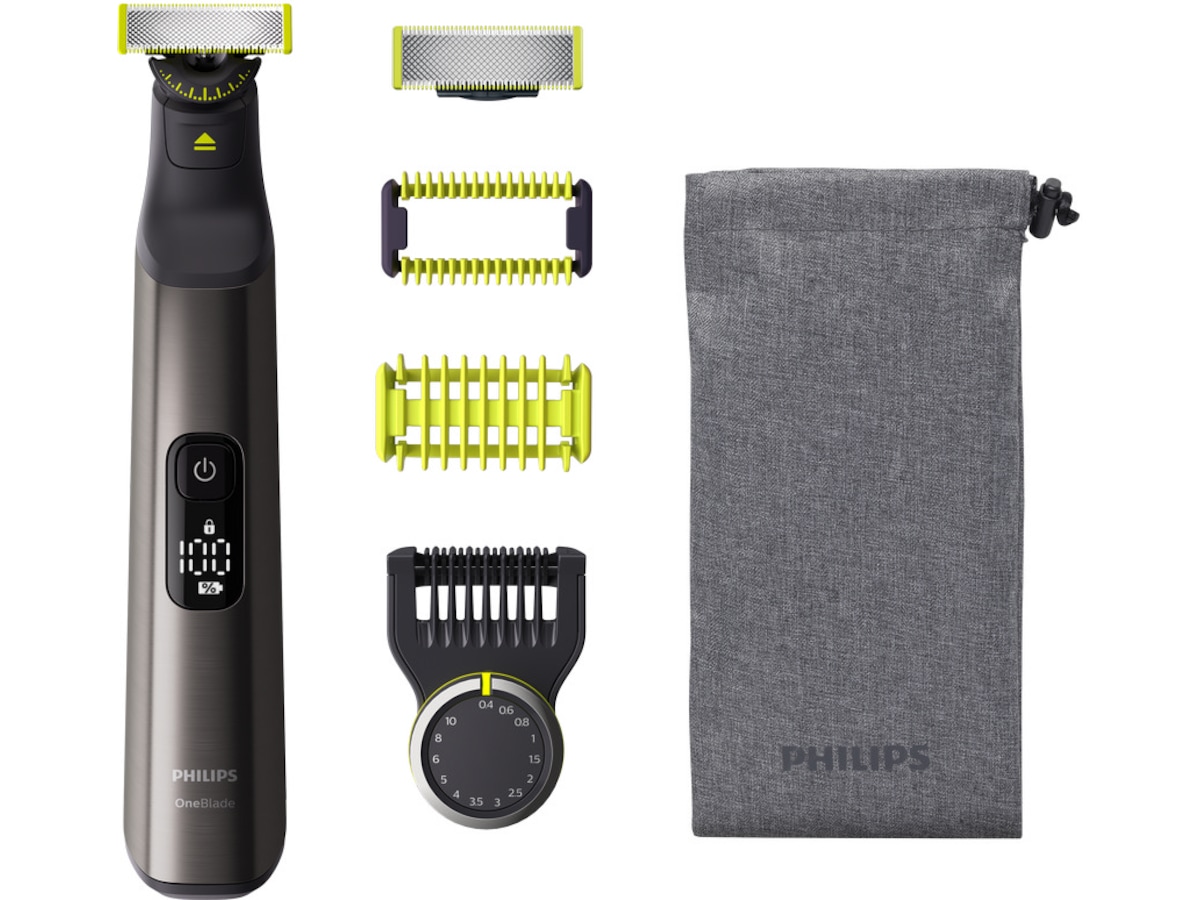 Philips OneBlade Pro Face + Body trimmer, kantklipper og barberer alle hårlengder. Du får ett blad til ansiktet og ett med hudbeskyttelse til kroppen. Du trenger ikke bruke flere redskaper. OneBlade gjør jobben.