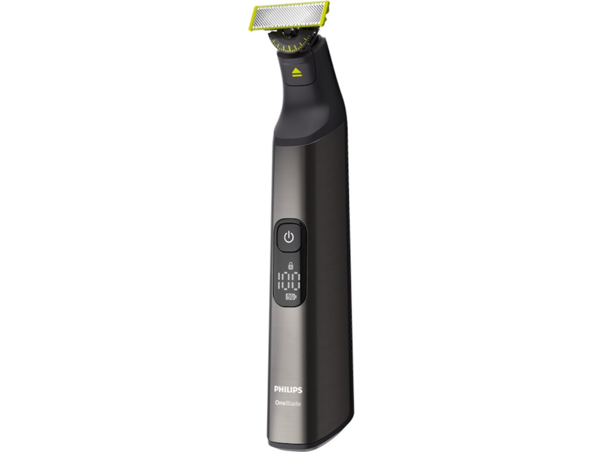 Påse at OneBlade alltid er klar til bruk ved å sjekke det digitale LED-displayet. Den varsler deg under bruk når batterinivået er lavt, og viser ladefremdriften når den er koblet til. Bruk transportlåsen og ta med deg OneBlade hvor som helst.