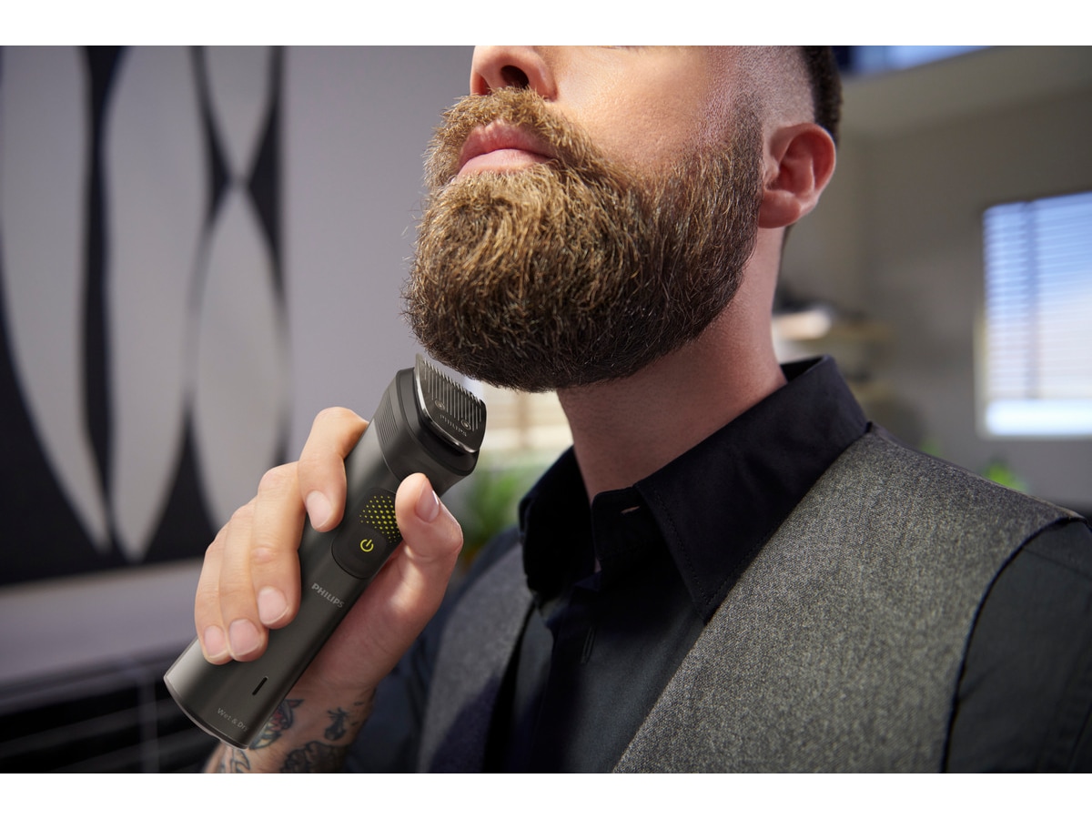 Dette pleiesettet med multikammer har 27 lengdeinnstillinger fra 0,2 til 20 mm i opptil 0,2 mm presisjonstrinn for jevn trimming på kortere og lengre skjeggstiler. For det perfekte skjegget bør du kanttrimme med OneBlade. Det dobbeltsidige bladet barberer i begge retninger og beskytter huden din mens du barberer kinn, hake eller hals.