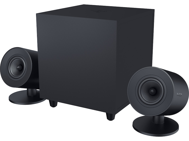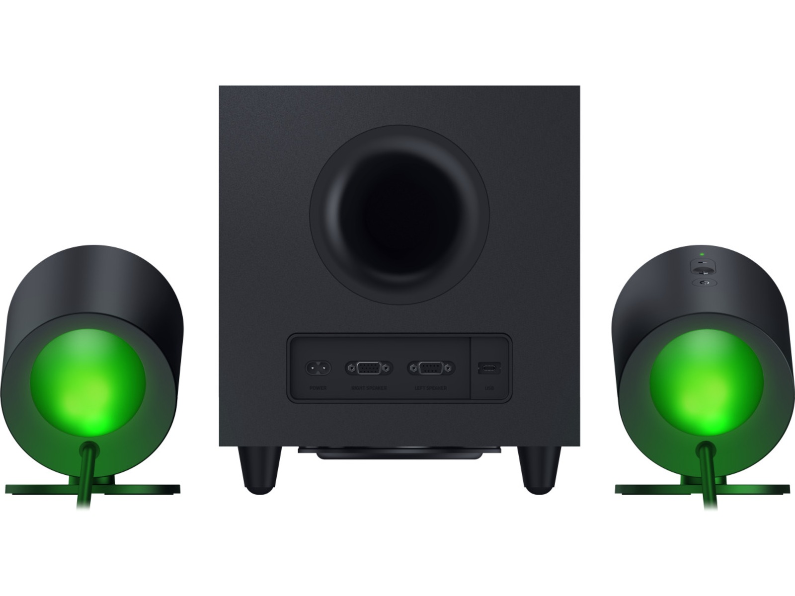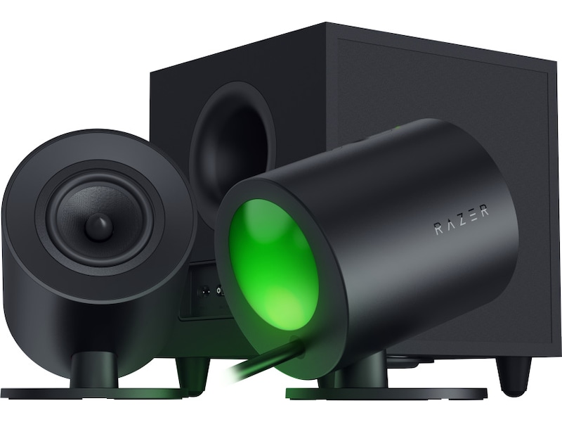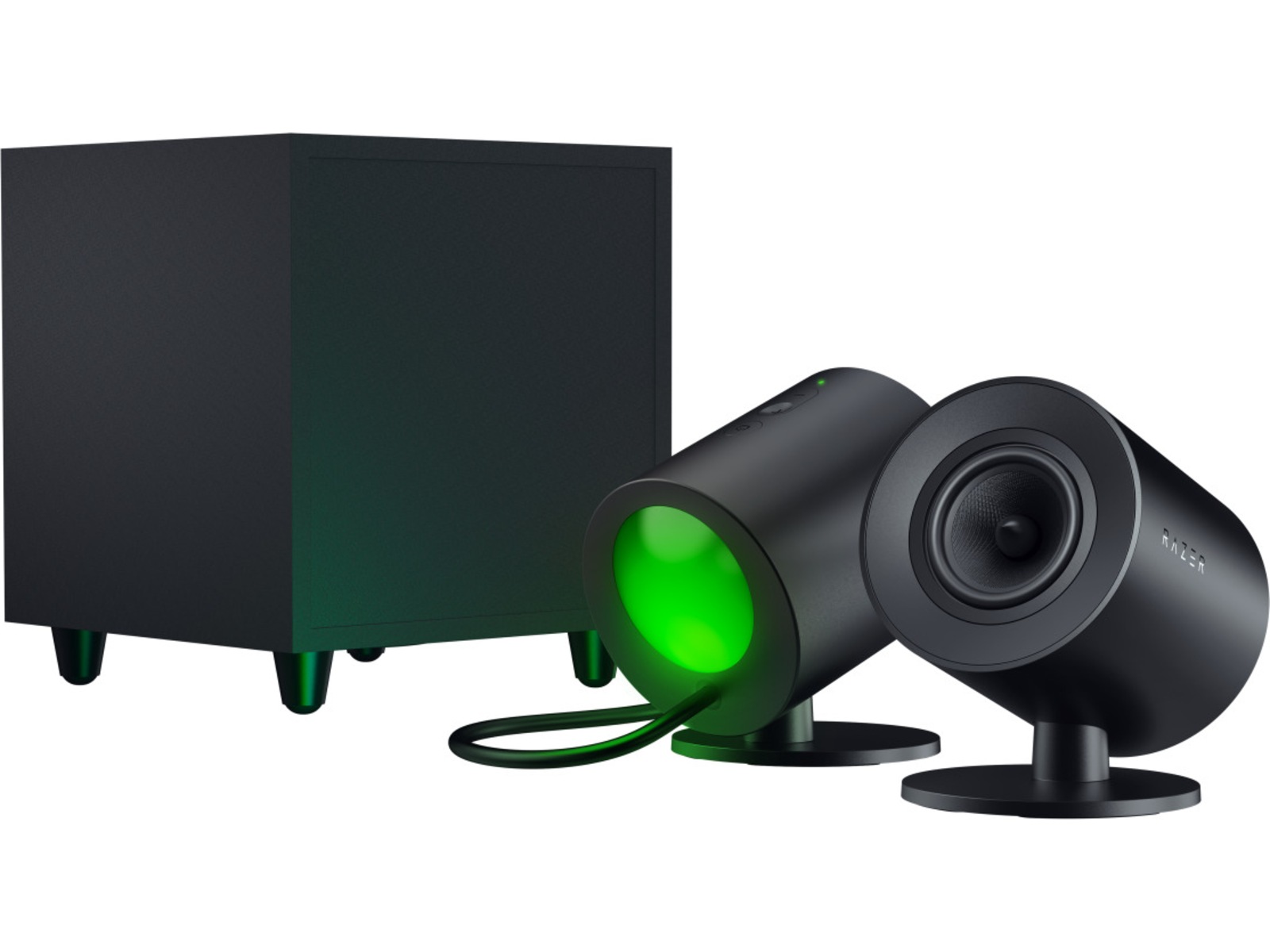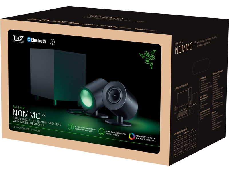 Sett lydbildet for seieren med Razer Nommo V2 – et gaminghøyttalersystem og subwoofer med fullfrekvens designet for hi-fi, romfyllende lyd og medrivende bass.