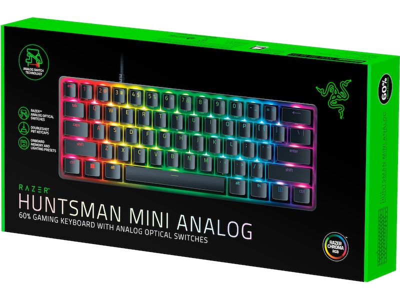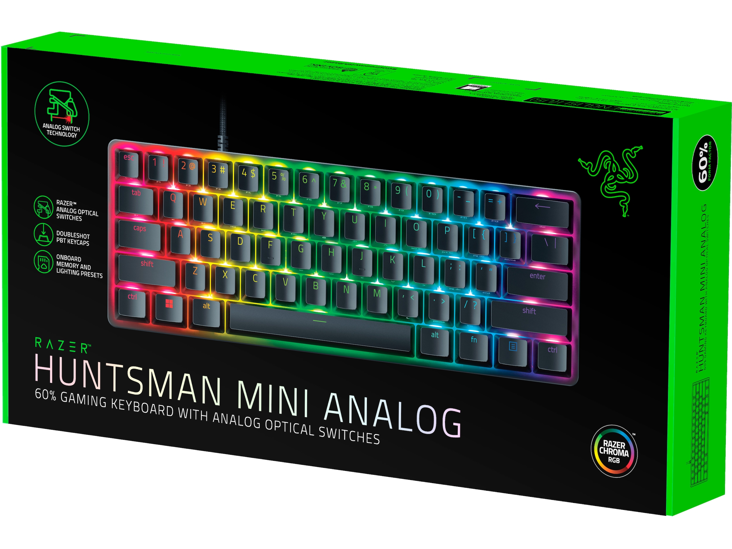 Med Razer Huntsman Mini Analog konkurrerer nå det høyeste nivået av kontroll i en annen skala. Møt vårt første 60 % gamingtastatur med Razer Analog Optical Switches – et kompakt, bærbart våpen som tilbyr den beste graden av utførelse.