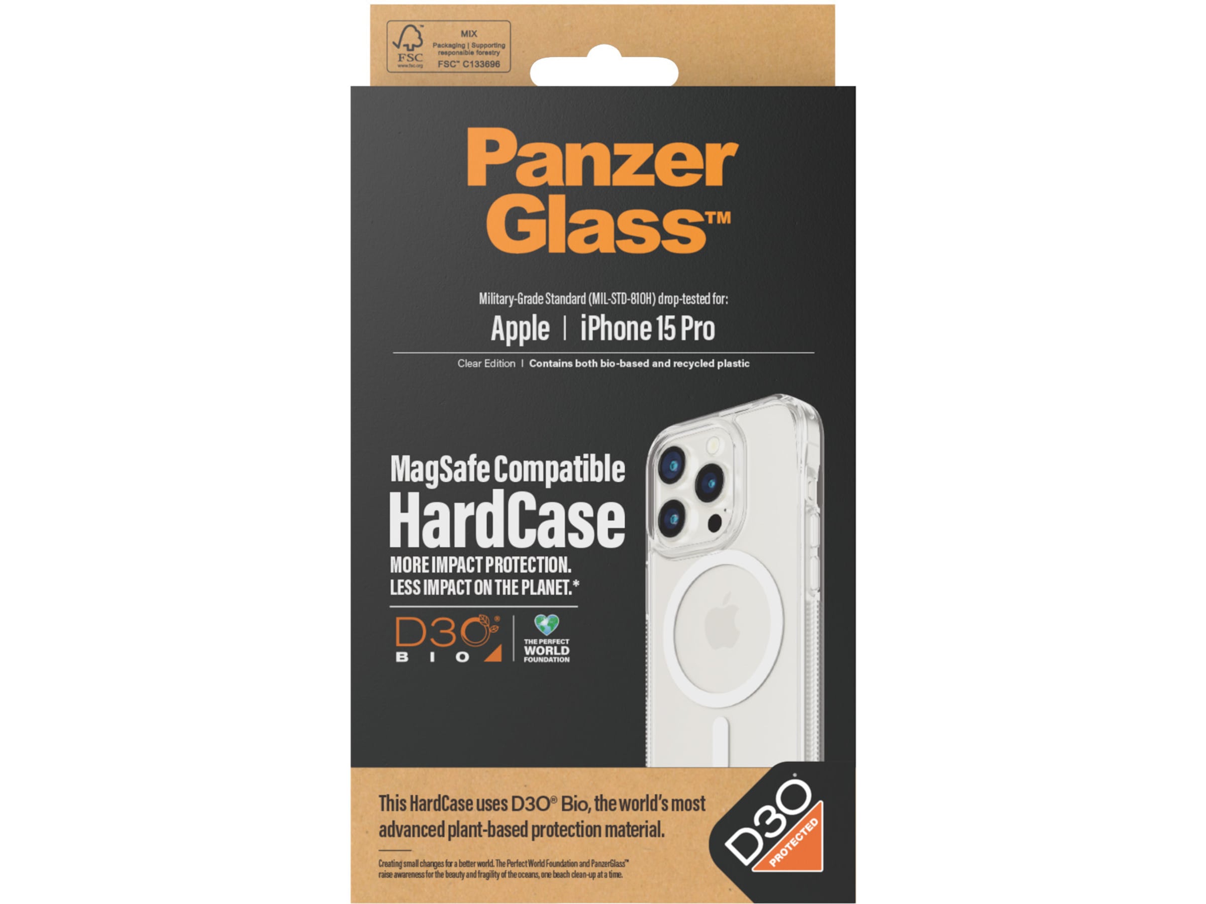 Ønsker du mer beskyttelse mot støt med mindre belastning på planeten? Laget med D3O® Bio, verdens mest avanserte plantebaserte beskyttelsesmateriale, pålitelig for å beskytte militære elitestyrker, denne PanzerGlass™ HardCase holder telefonen din trygg mot fall, støt, riper og det meste av alt annet livet måtte kaste på deg. Baksiden av kofferten er laget av 100 % resirkulert plast, rammen av plast med 44 % plantebasert innhold, og hele kofferten er dråpetestet etter 3 x Military Grade Standard. Det betyr at den tåler flere fall fra en høyde på 3,6 meter eller en høyde som sitter-på-en-balkong-og-tilfeldigvis-slipper-telefonen.