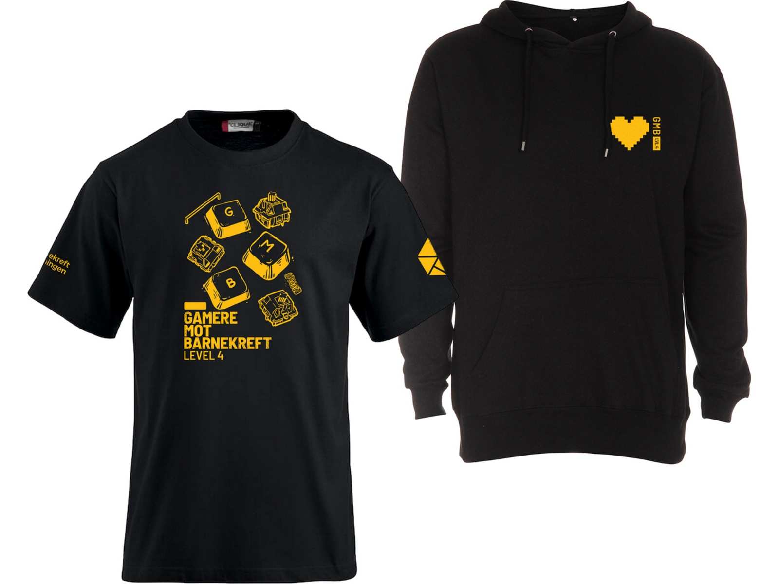 Hele overskuddet fra klessalget går uavkortet til Barnekreftforeningen og deres arbeid med å hjelpe barn og unge rammet av kreft, samt forskning innenfor feltet. Kjøp GMB4-t-skjorte + hettegenser og støtt denne viktige saken.