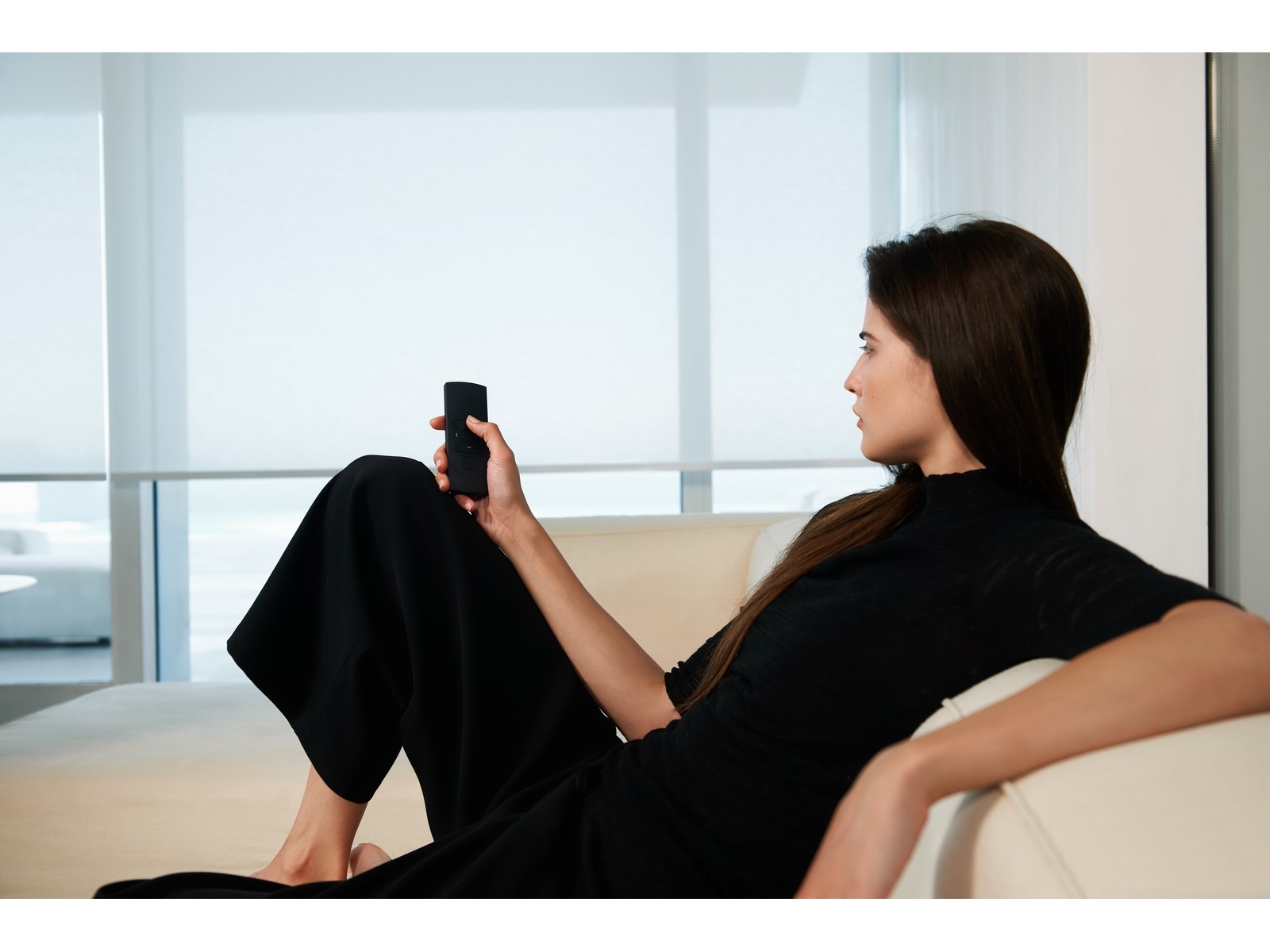 Kontroller og programmer de motoriserte vindusplatene dine med et knappetrykk. MotionBlinds fjernkontroller har en rekkevidde på ca. 30 meter. De har fem kanaler som kan kobles til ett eller flere vindusbelegg, som du deretter kan betjene samtidig. Med fjernkontrollen kan du flytte vindusdekselet i en hvilken som helst posisjon du ønsker og til en foretrukket mellomstilling som du kan stille inn selv.
