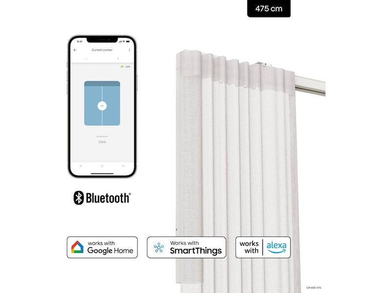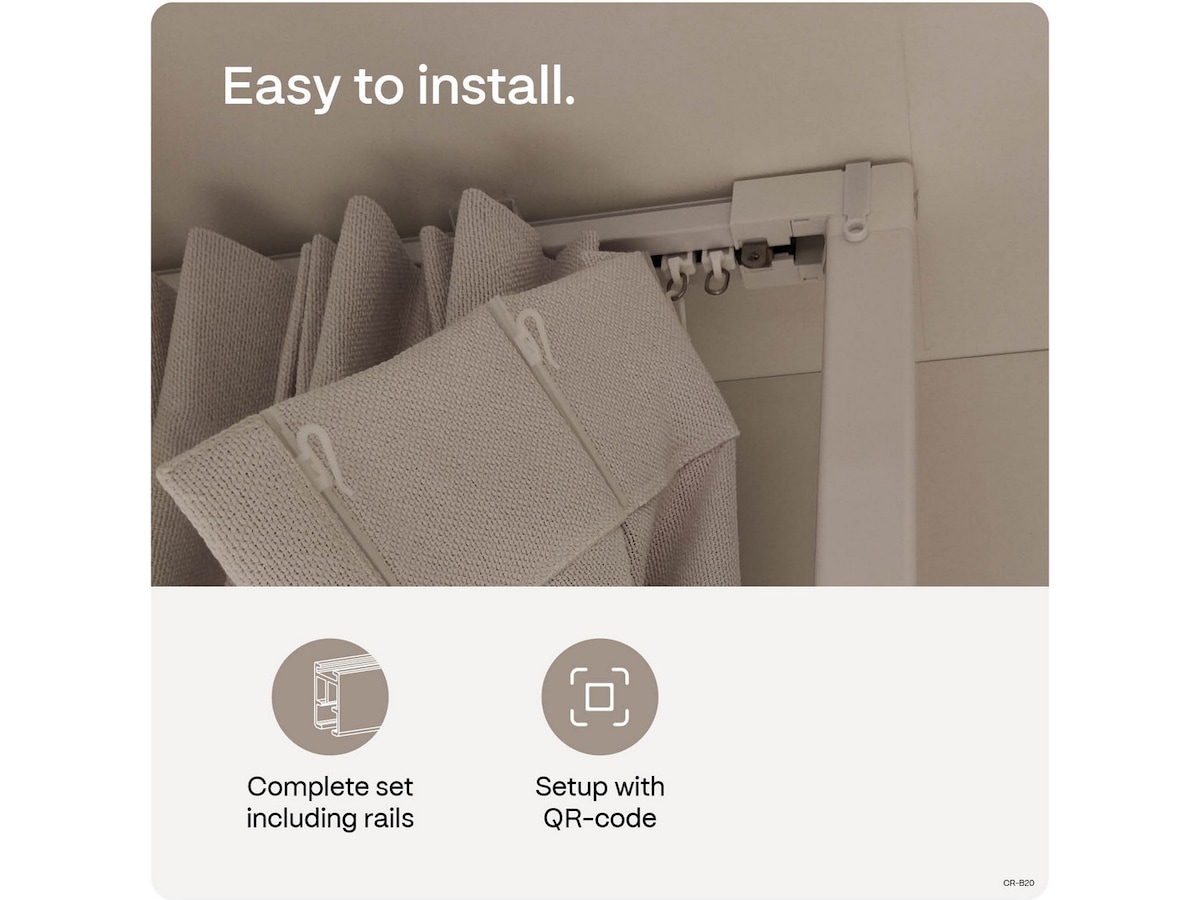 Dette smarte motoriserte gardinsettet består av en gardinskinne og en MotionBlinds-motor som driver skinnen. MotionBlinds ettermonterte gardinmotor er dermed enkel å montere med de eksisterende plisségardinene dine. Det er svært enkelt å sette opp den motoriserte gardinskinnen. Du kan gjøre dette uten fjernkontroll ved hjelp av smarttelefonen. Når du har installert gardinen, kan du laste ned den gratis MotionBlinds Bluetooth-appen. Gjennom appen skanner du den unike oppsettkoden til gardinet ditt, hvoretter du stiller inn endestillingene i noen få enkle steg. Mellom disse venstre- og høyrestillingene kan gardinen bevege seg frem og tilbake. Den trådløse motoren har et integrert batteri, som krever lading en eller to ganger i året ved hjelp av den medfølgende USB-C-kabelen.