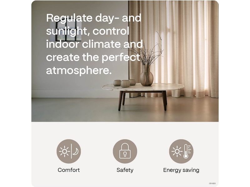 Ønsker du å fjernstyre gardinen med smarttelefonen din utenfor Bluetooth rekkevidde, eller koble til et smarthjemsystem som Google, Alexa eller SmartThings for å la gardinet fungere med andre enheter i hjemmet, og styre det med stemmen din igjennom smarthøyttalere? Deretter installerer du MotionBlinds Wi-Fi-bro. Denne fås separat som tilbehør, det samme er fjernkontrollen.