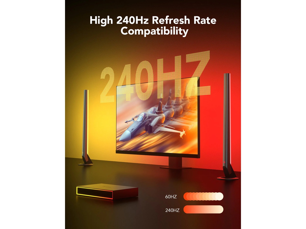 AI Gaming Sync Box er verdens første 240 Hz-kompatible HDMI-synkroniseringsbokssystem, som gir en fantastisk reaktiv belysning med nesten null-forsinkelser mens spillet kjører med silkemyke bildefrekvenser på 1080P. Den støtter også 2K@144Hz og 4K@60Hz, for jevne drap, mer nøyaktig opptak og høyere kampkraft.
